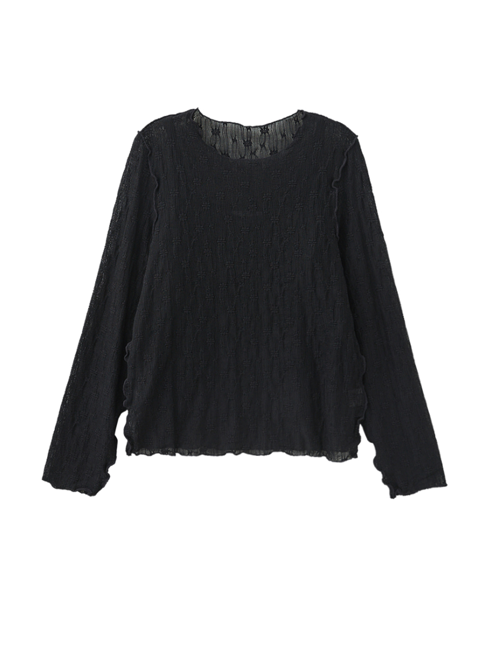 *透膚蕾絲面料 *布料柔軟親膚 *內附肩帶小內搭 *圓領密考呈現波浪造型