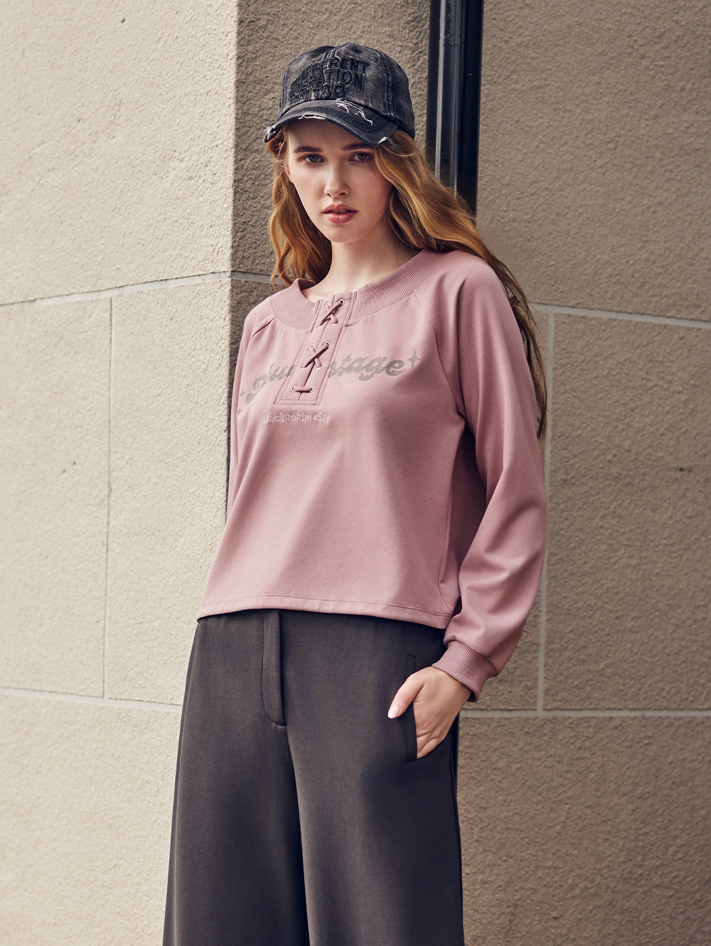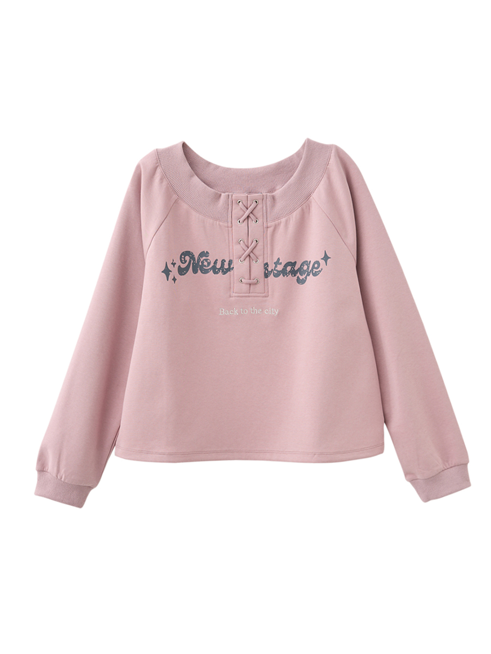 *羅紋領口加強彈性與耐用 *復古印字設計 *領口綁繩交叉設計 *拉客蘭袖版型,活動舒適