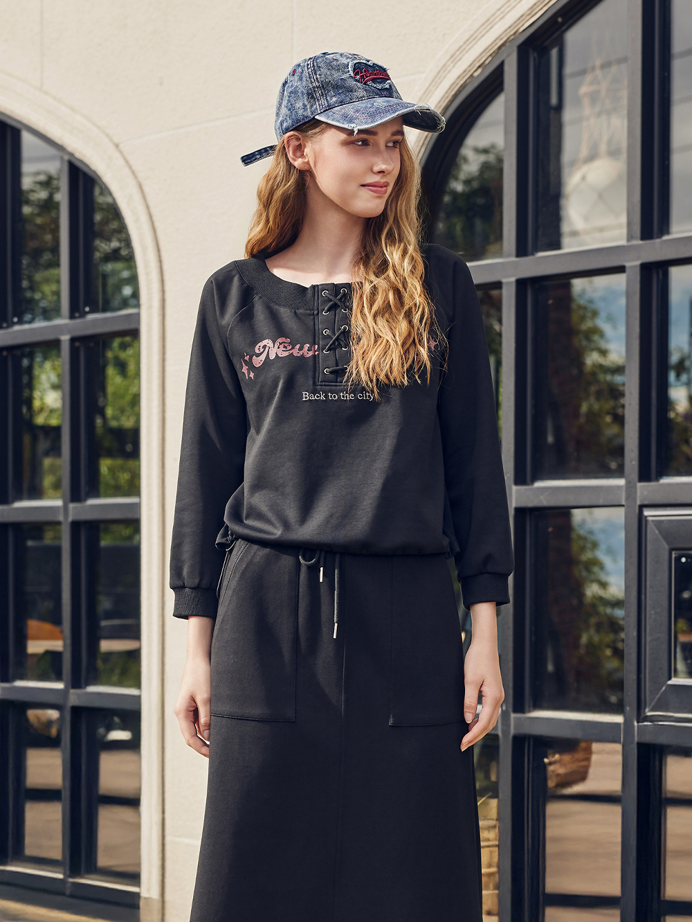 *羅紋領口加強彈性與耐用 *復古印字設計 *領口綁繩交叉設計 *拉客蘭袖版型,活動舒適