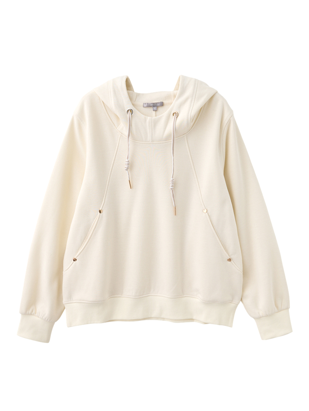 *內刷毛保暖面料 *金屬愛心裝飾釦 *連帽抽繩設計 *落間拉克蘭袖版型