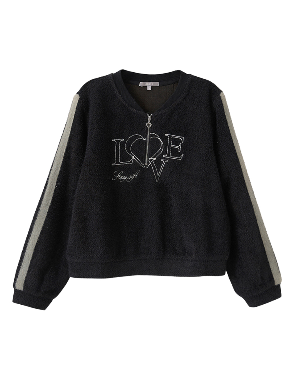 *前開拉鍊,可自由調整 *跳色拼接細節 *絨毛手感親膚面料 *領口羅紋加強彈性與耐用
