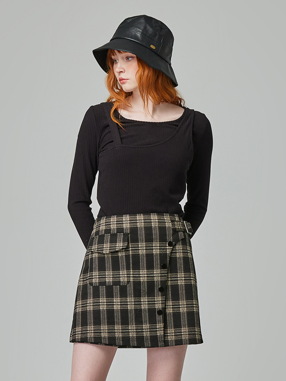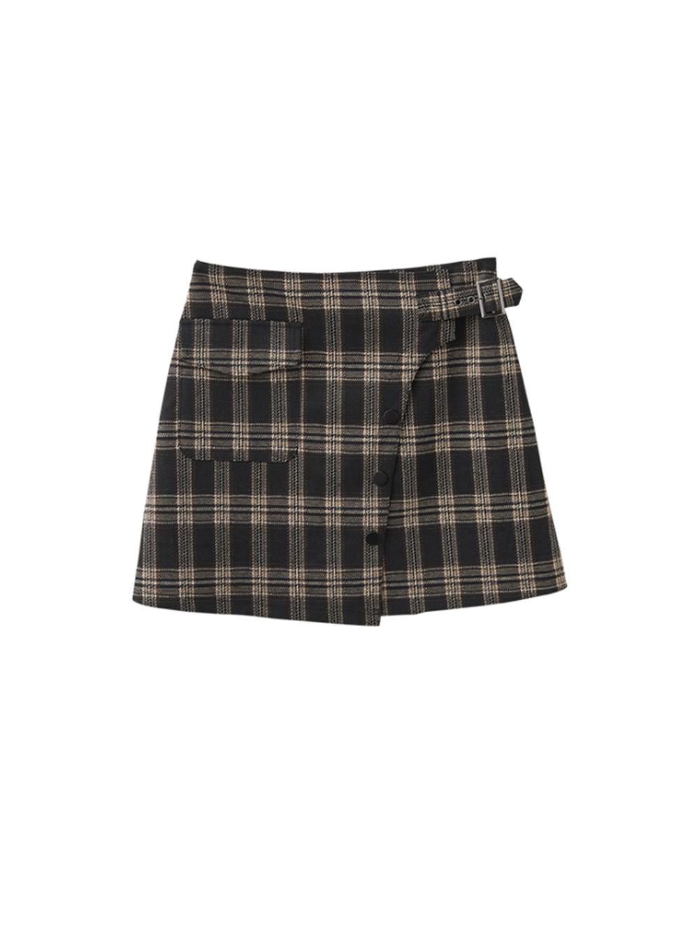 *質感秋季格紋圖案 *斜邊版型造型 *安全褲裡設計 *適合秋季穿搭