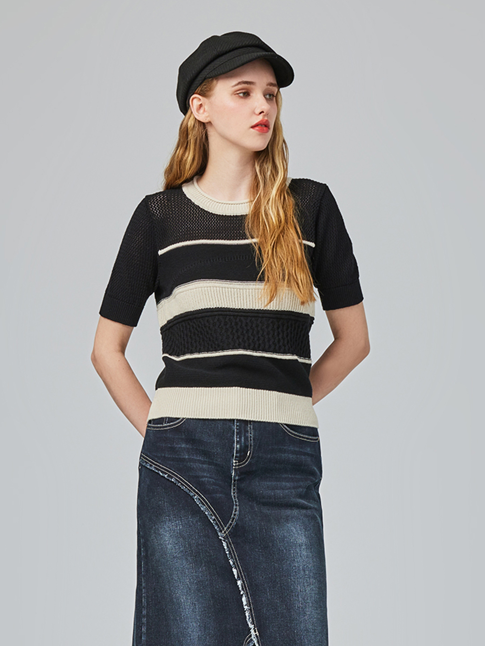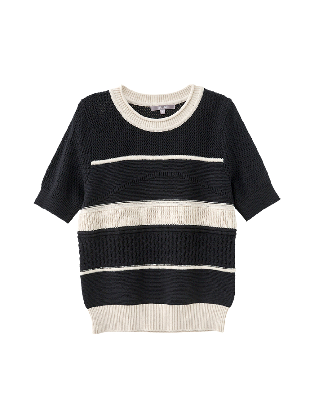 *多層次針織紋理造型拼接 *袖口羅紋針織收邊,微拋袖設計 *棉質舒適面料 *顯瘦腰部線條造型