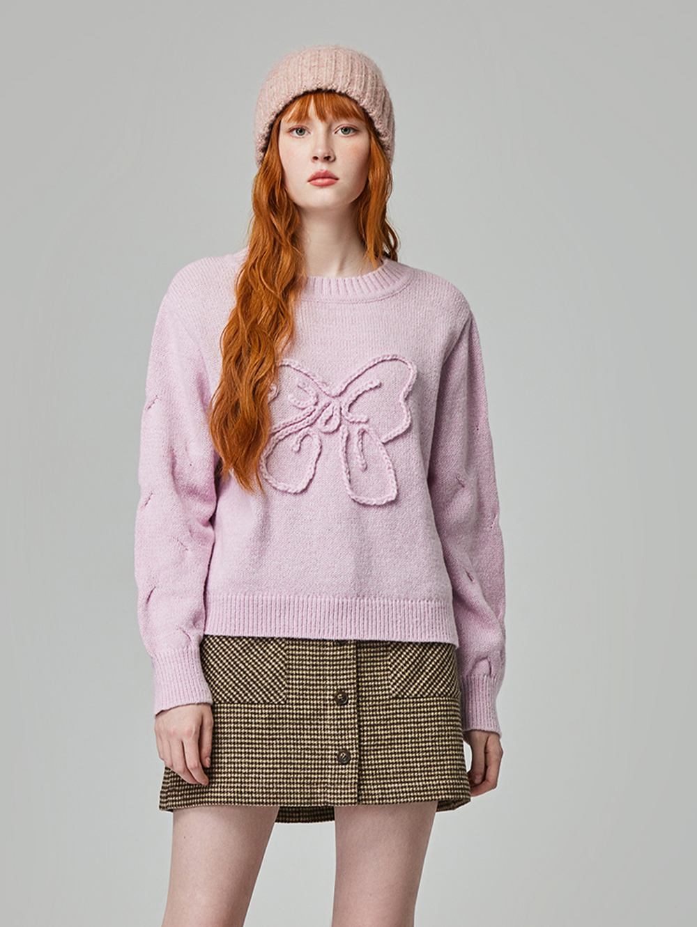 *短版版型,修飾身形比例 *可愛立體蝴蝶結緹花造型 *面料柔軟舒適 *羅紋加強領口、袖口彈性與耐用