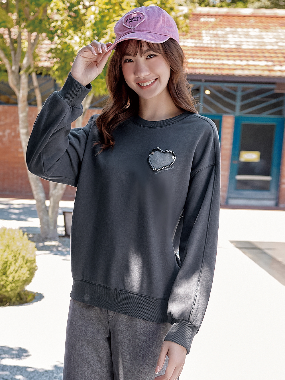 DITA韓系牛仔愛心大學t