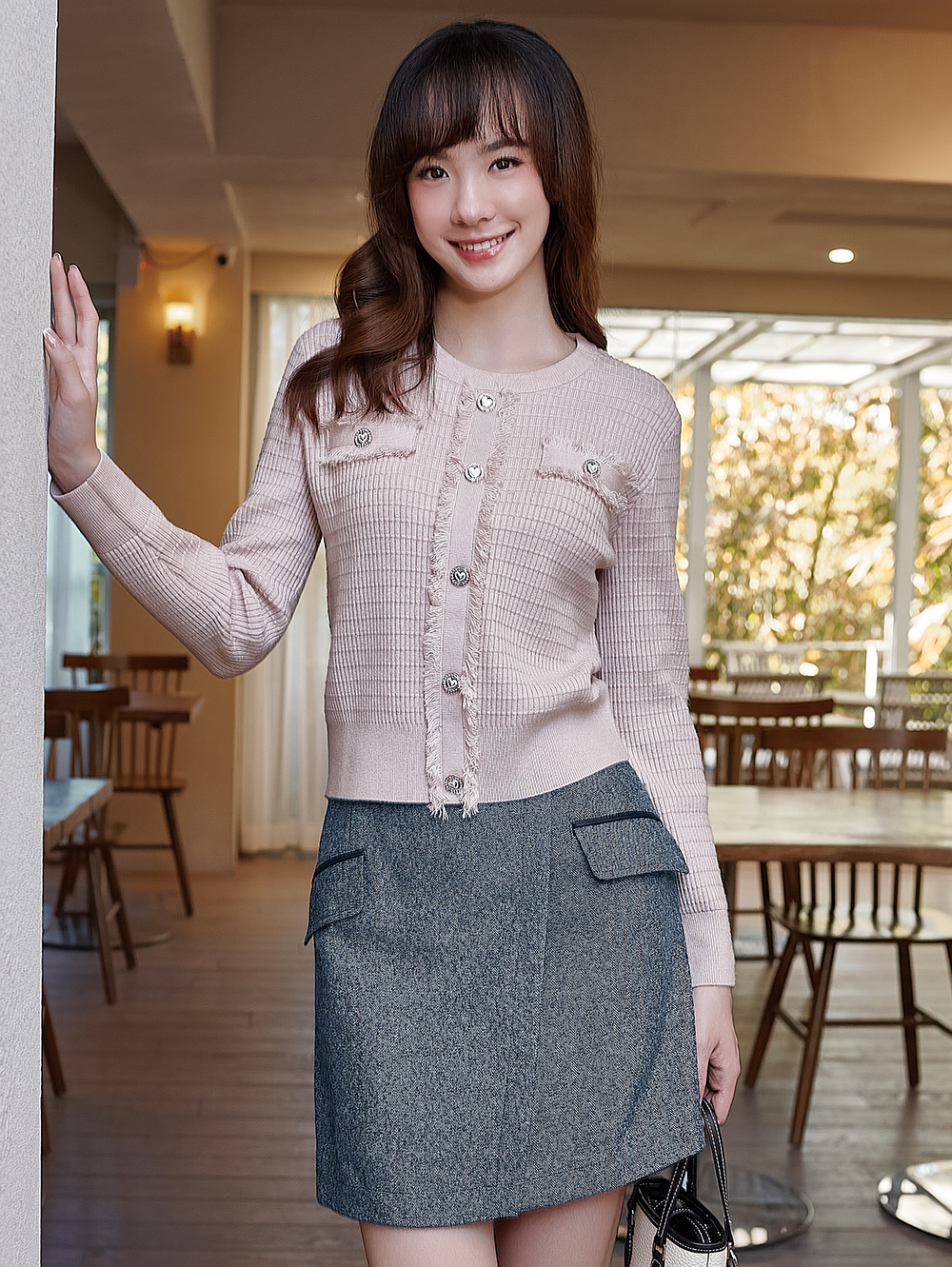 DITA小香風組織紋針織上衣