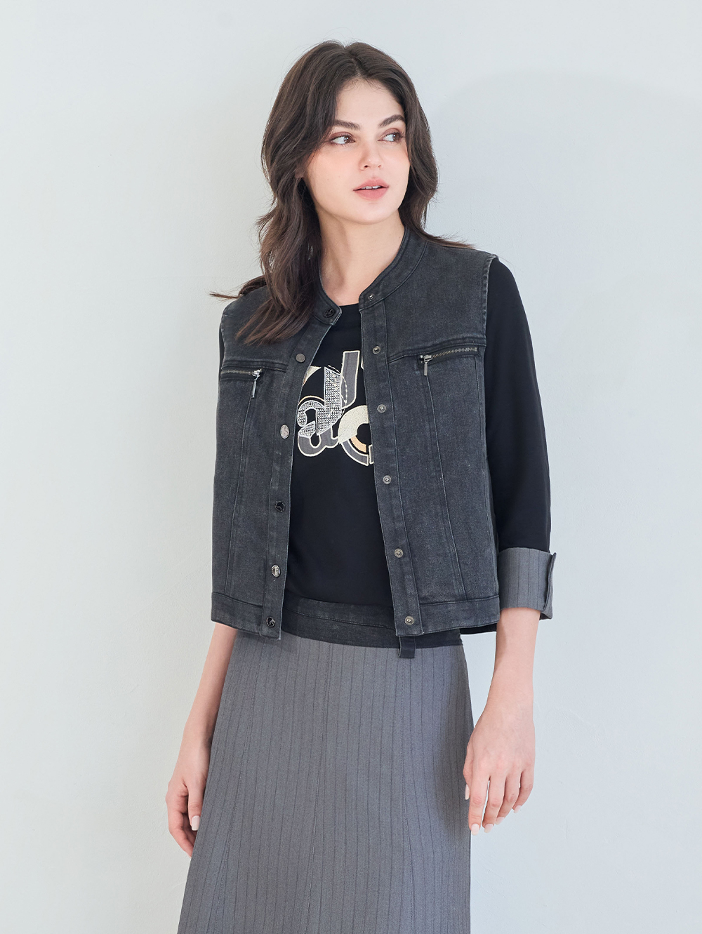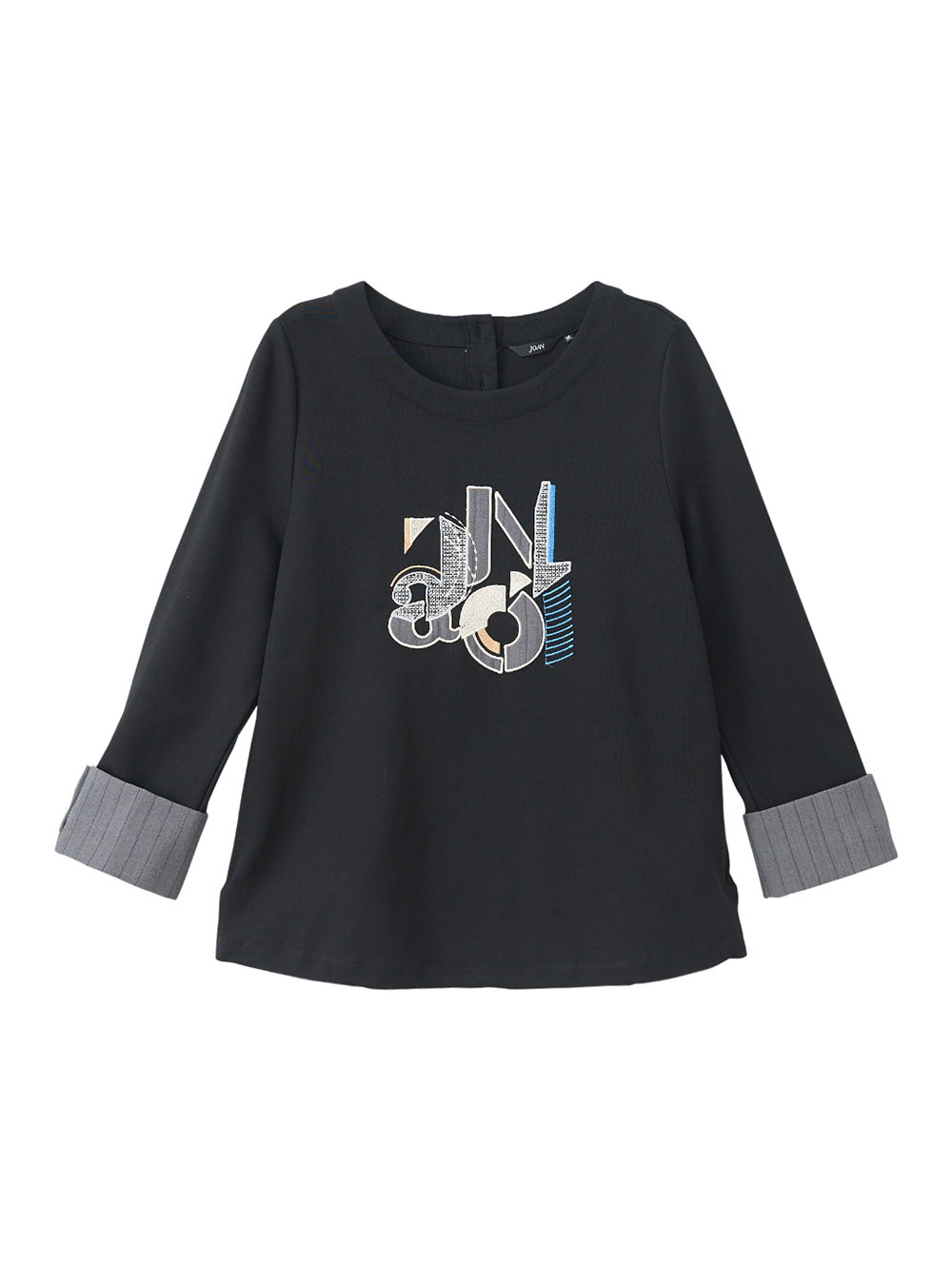 多層次拼接袖口, 搭配解構JOAN logo印花, 穿起來自在又有態度, 可與同系列條紋裙裝搭配。