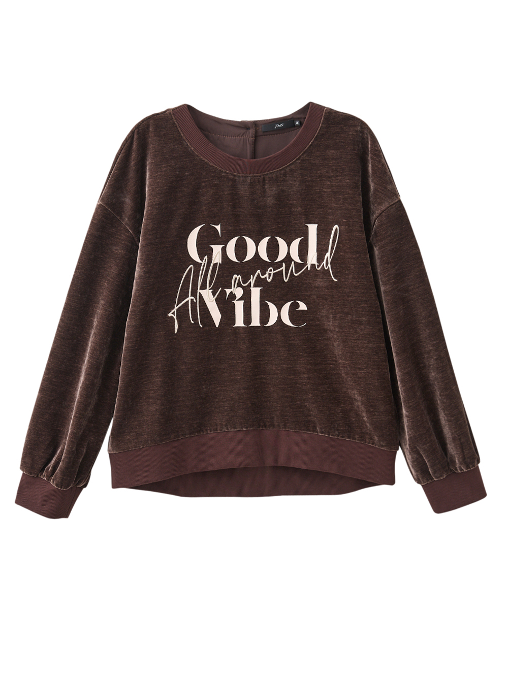 柔滑天鵝絨布散發獨特光澤, 搭配字母印花, 率性與溫柔一次擁有。