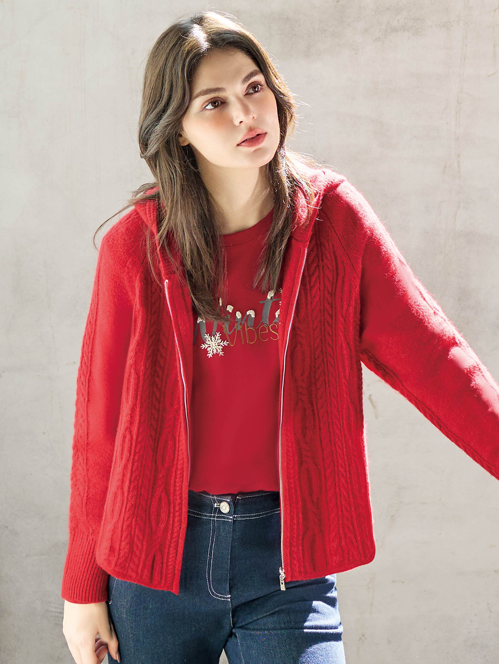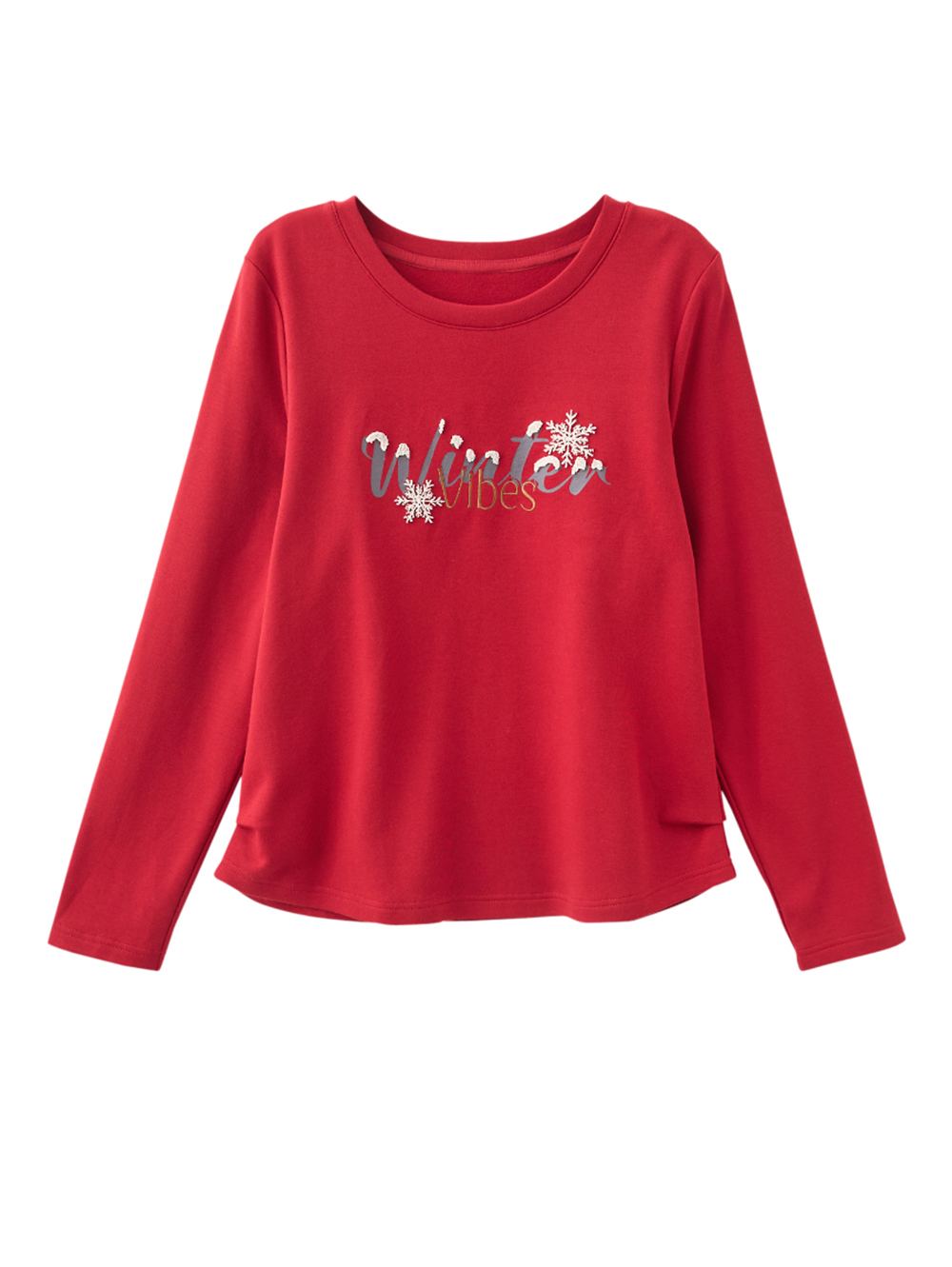 冬日氛圍輕磨毛, 增添柔滑舒適的觸感, 層次工藝的字母與雪花印花點綴節慶氣息。順身不貼身的剪裁, 無論單穿或內搭都合適。