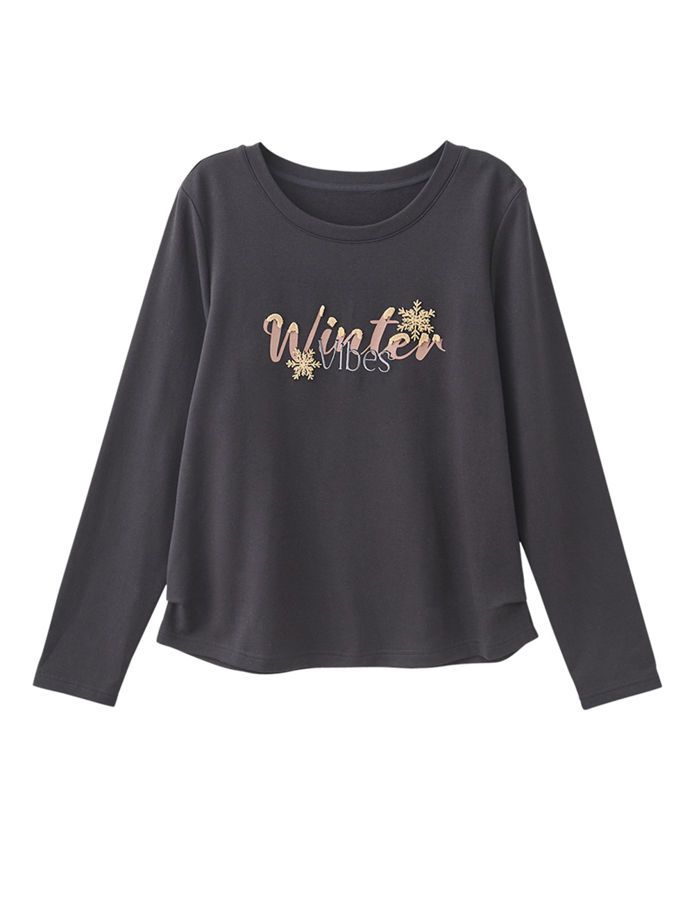 冬日氛圍輕磨毛, 增添柔滑舒適的觸感, 層次工藝的字母與雪花印花點綴節慶氣息。順身不貼身的剪裁, 無論單穿或內搭都合適。
