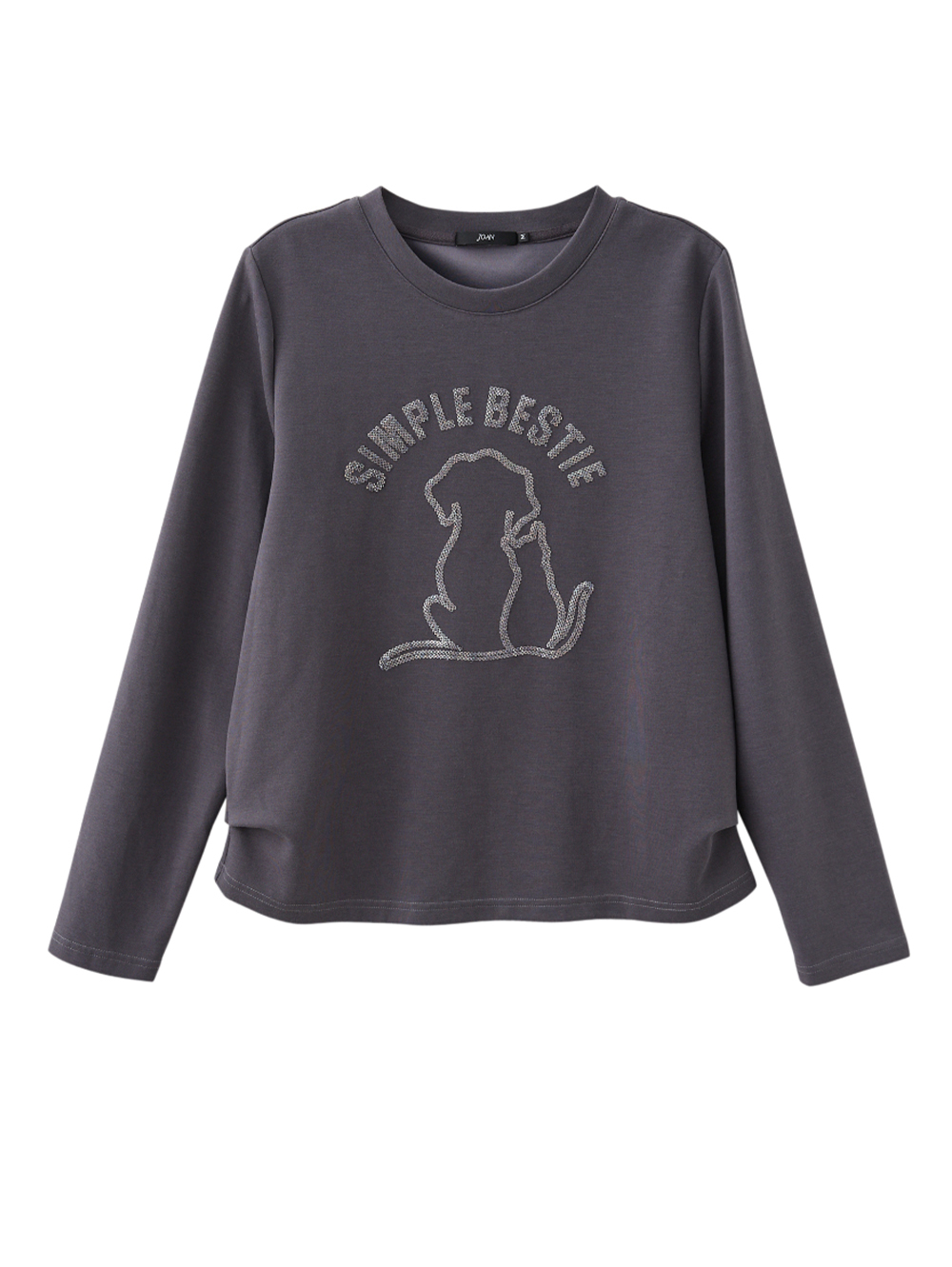 JOAN溫柔療癒系亮片狗狗圖樣上衣