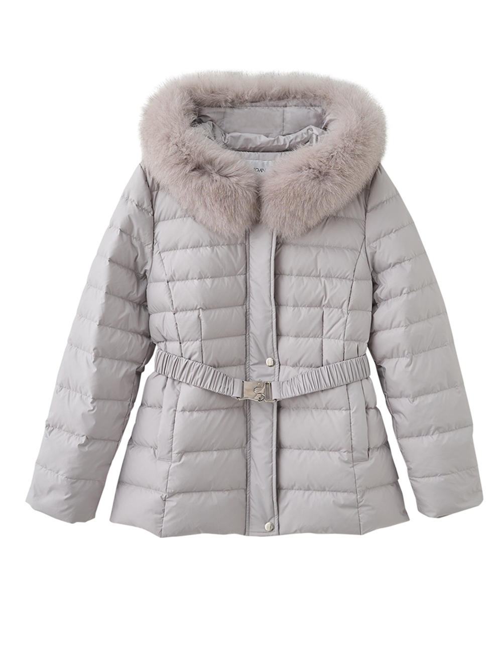 JOAN都市輕奢狐狸毛領腰帶羽絨外套