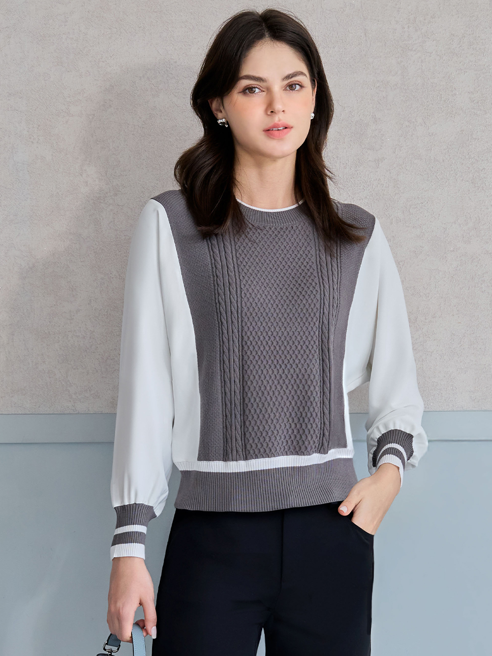 JOAN針平織拼接造型連袖上衣