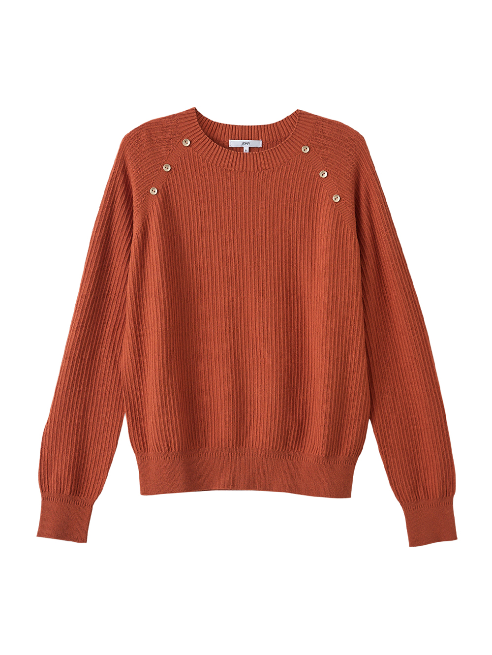 立體條紋組織, 親膚紗線, 順身不貼身版型超修飾, 金屬釦裝飾單穿也能展現簡約質感。