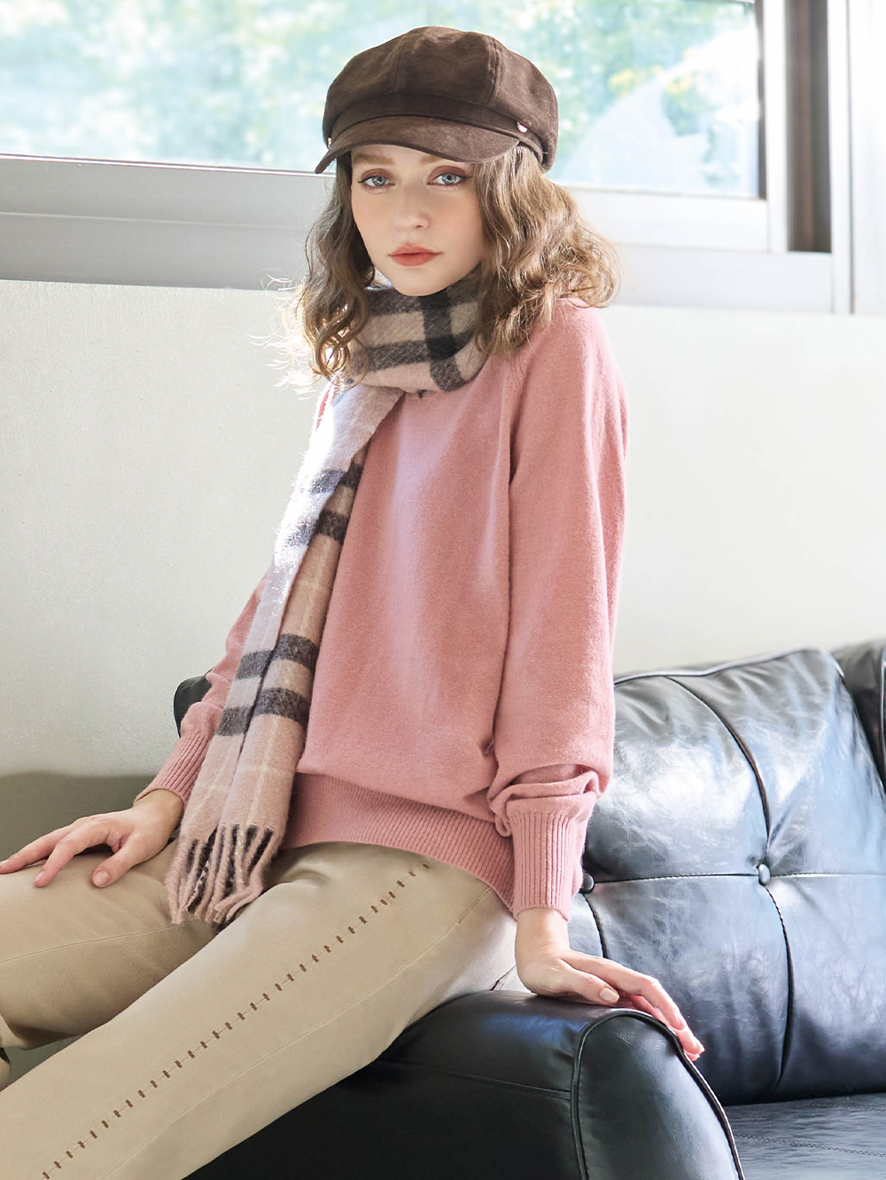 以Csahmere羊絨混紡打造親膚溫暖的質感觸感, V領修飾臉型與頸部線條, 前短後長的版型巧妙拉長腿部比例, 輕鬆穿出隨興的質感日常。