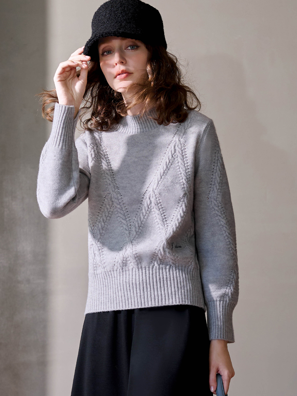 立體菱格辮紋交錯視覺, 展現事功異感, 親膚柔軟的蓬鬆毛料, 穿上即可感受溫暖包覆。