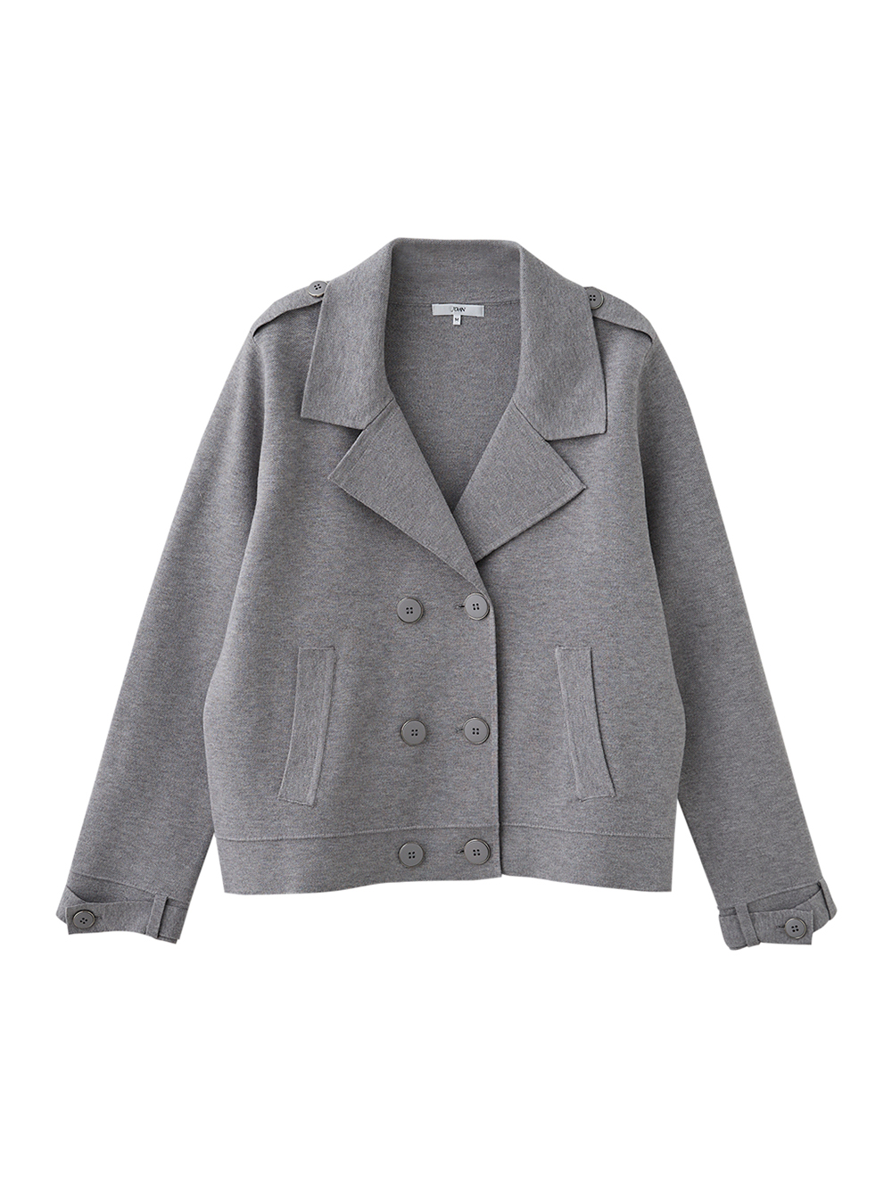 輕盈針織材質, 舒適又保暖 ,雙排釦加上翻領設計, 知性與大方並存, 適合各種場合