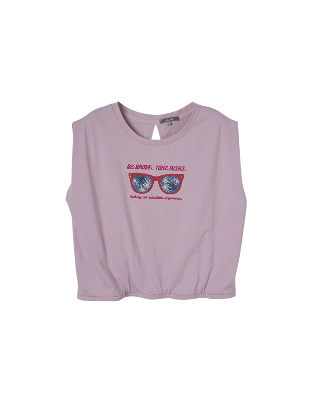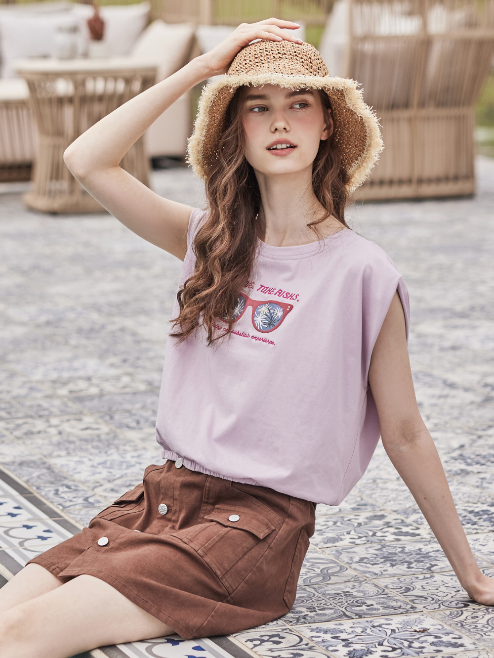 正面為充滿夏日風情的墨鏡圖案,背面為假兩件式設計,有設計感挖洞但不用擔心曝光,下擺微縮口可以不用扎褲頭。