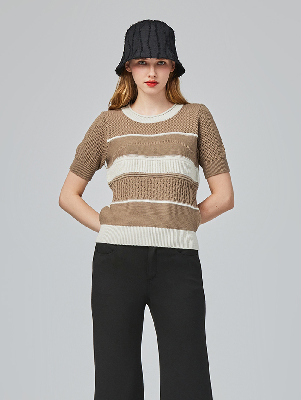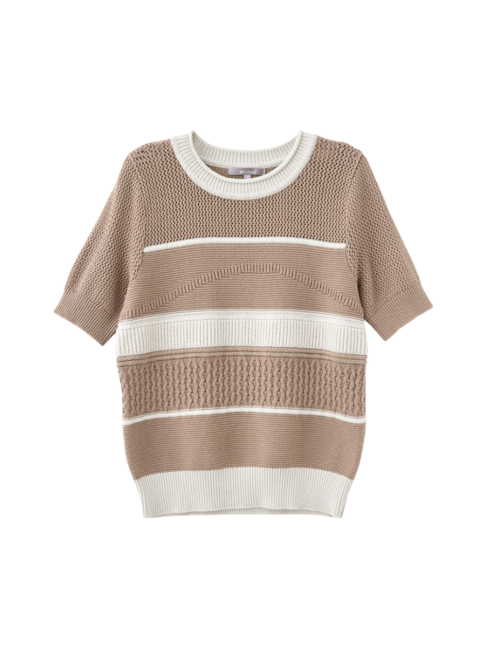 *多層次針織紋理造型拼接 *袖口羅紋針織收邊,微拋袖設計 *棉質舒適面料 *顯瘦腰部線條造型