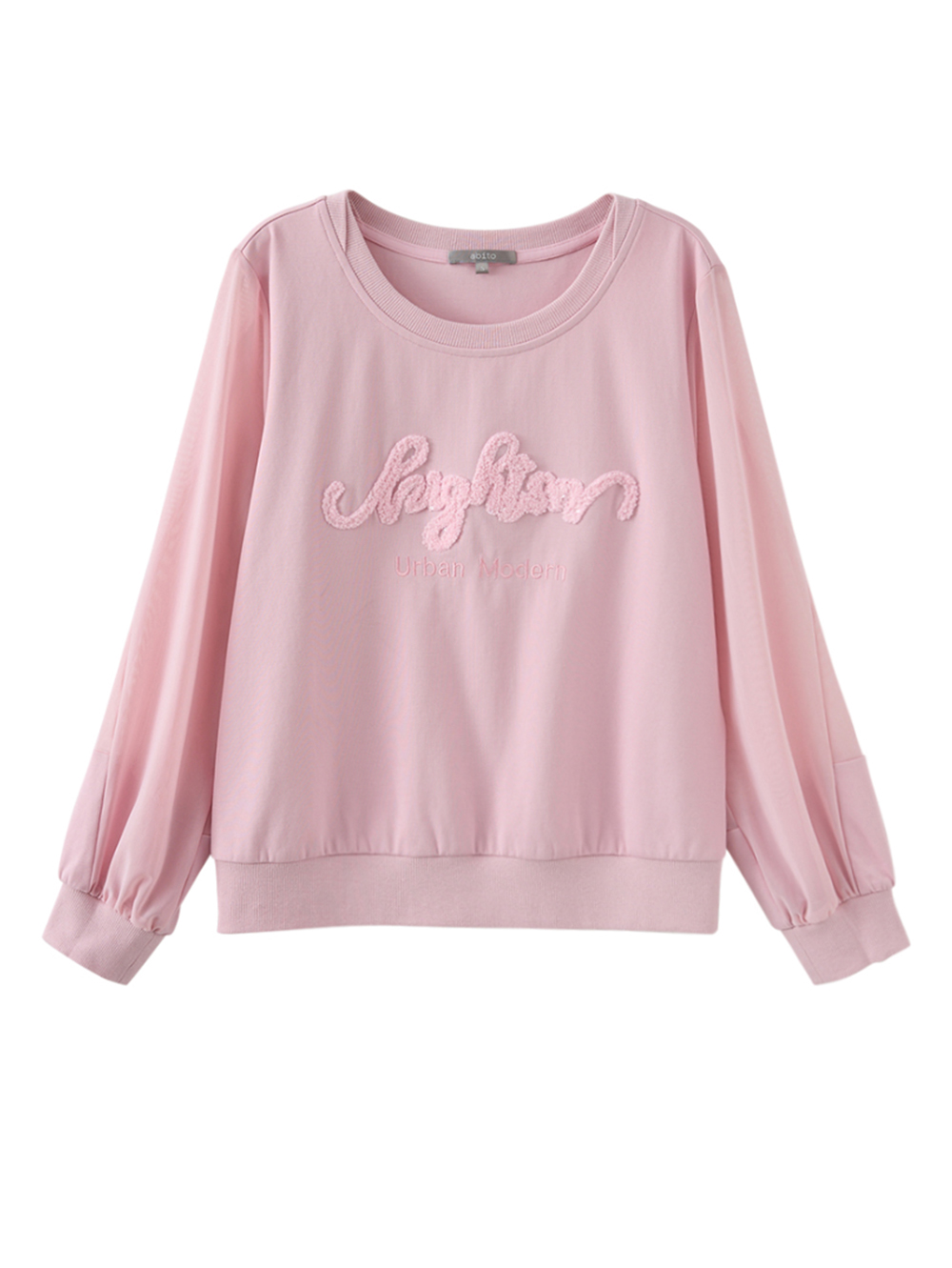 *精美立體刺繡 *舒適版型棉質上衣 *網紗面料拼接袖子 *羅紋圓領加強彈性及耐用