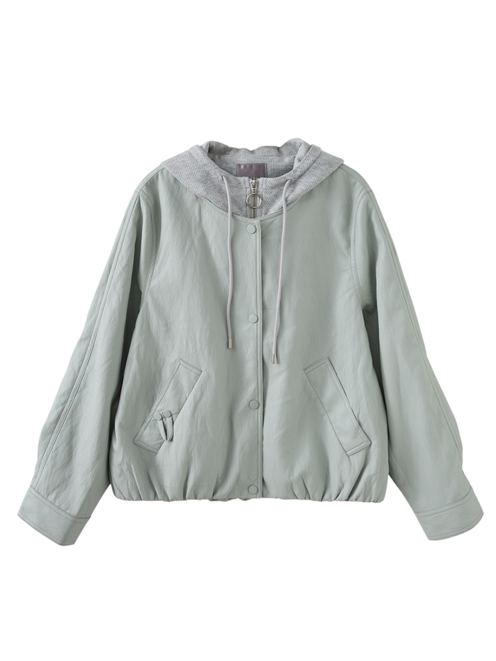 *假兩件增加層次感 *柔軟舒適皮革 *寬鬆休閒連帽版型 *布料保暖親膚