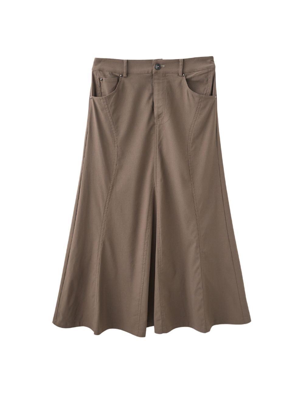 以極簡的線條與精緻弧型剪裁呈現高雅氣質, 下擺岔片設計自然開展, 隨步伐流動出柔和律動感。