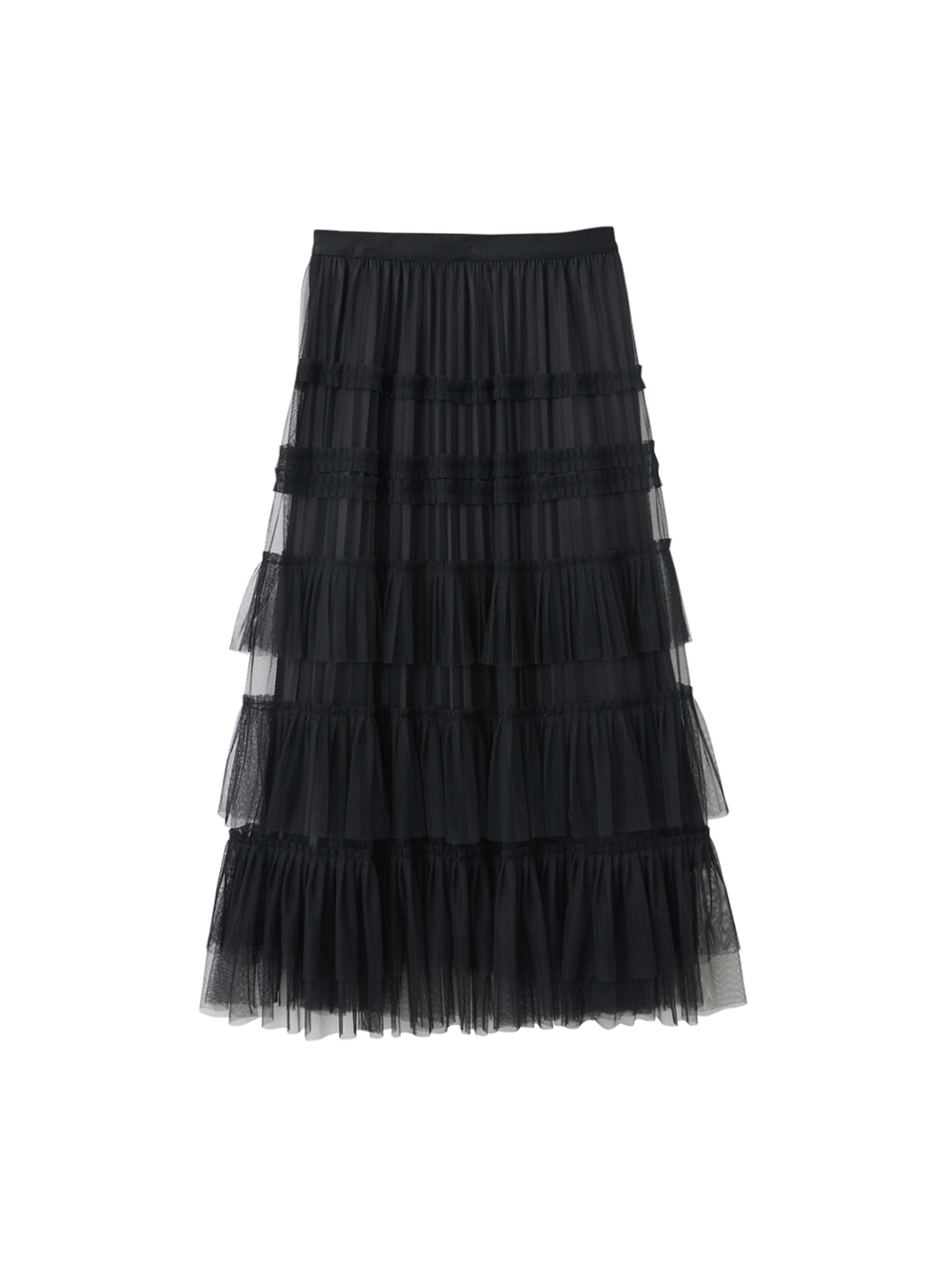 多層蛋糕裙型剪裁降低網紗裙的澎度與份量感, 展現浪漫又個性的風格。