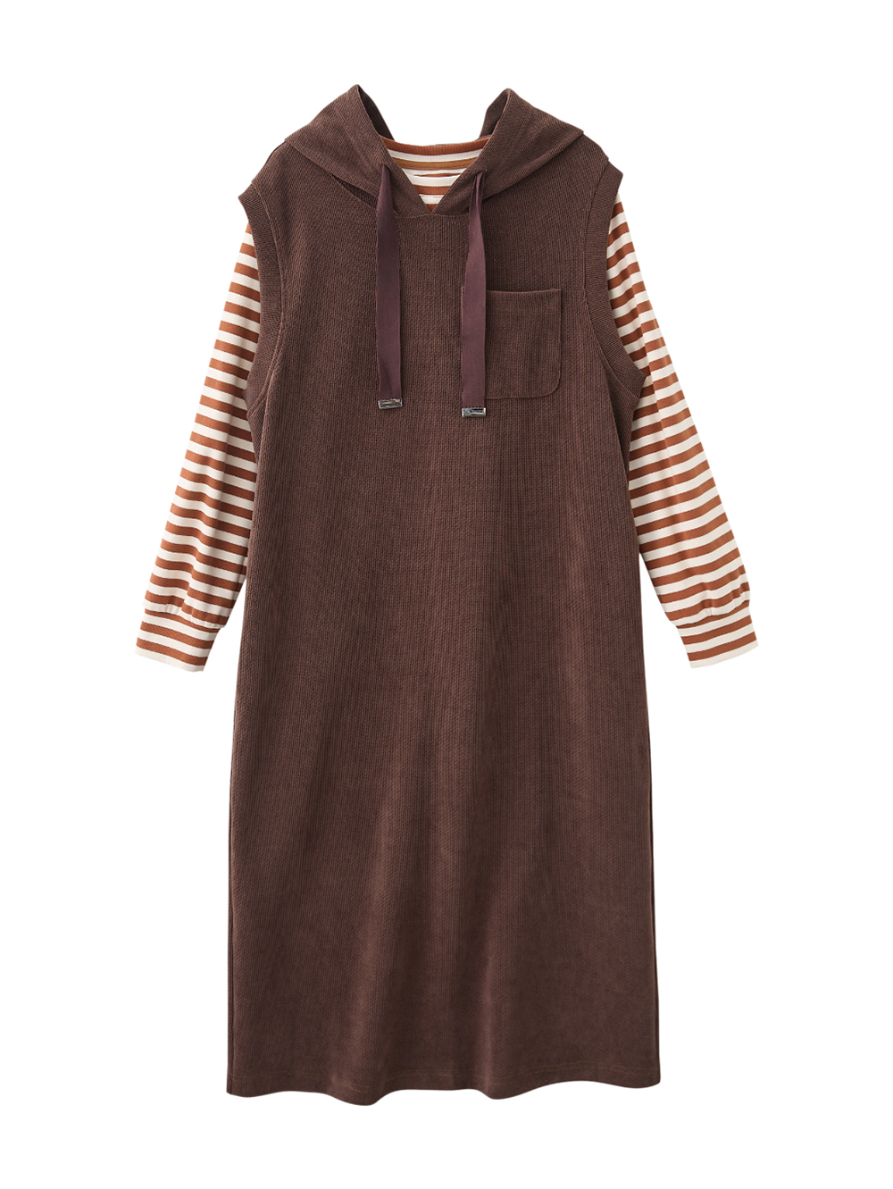 JOAN慵懶層次兩件式休閒連帽洋裝