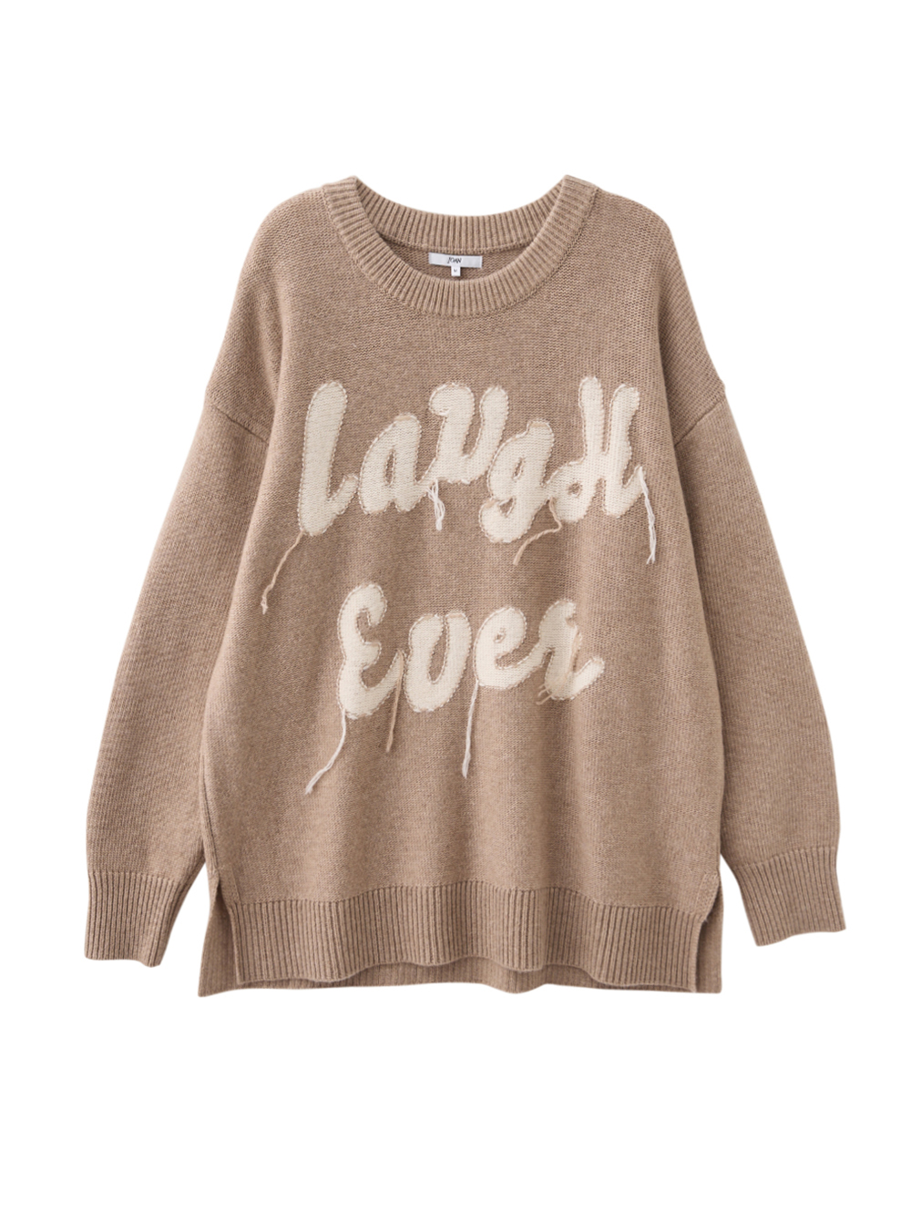 胸前手寫風格字樣繡線搭配自然垂若線尾, 營造慵懶不刻意的隨性風格, 輕鬆落肩版型, 長度修飾腹臀, 可單穿, 與大衣搭配也好看。