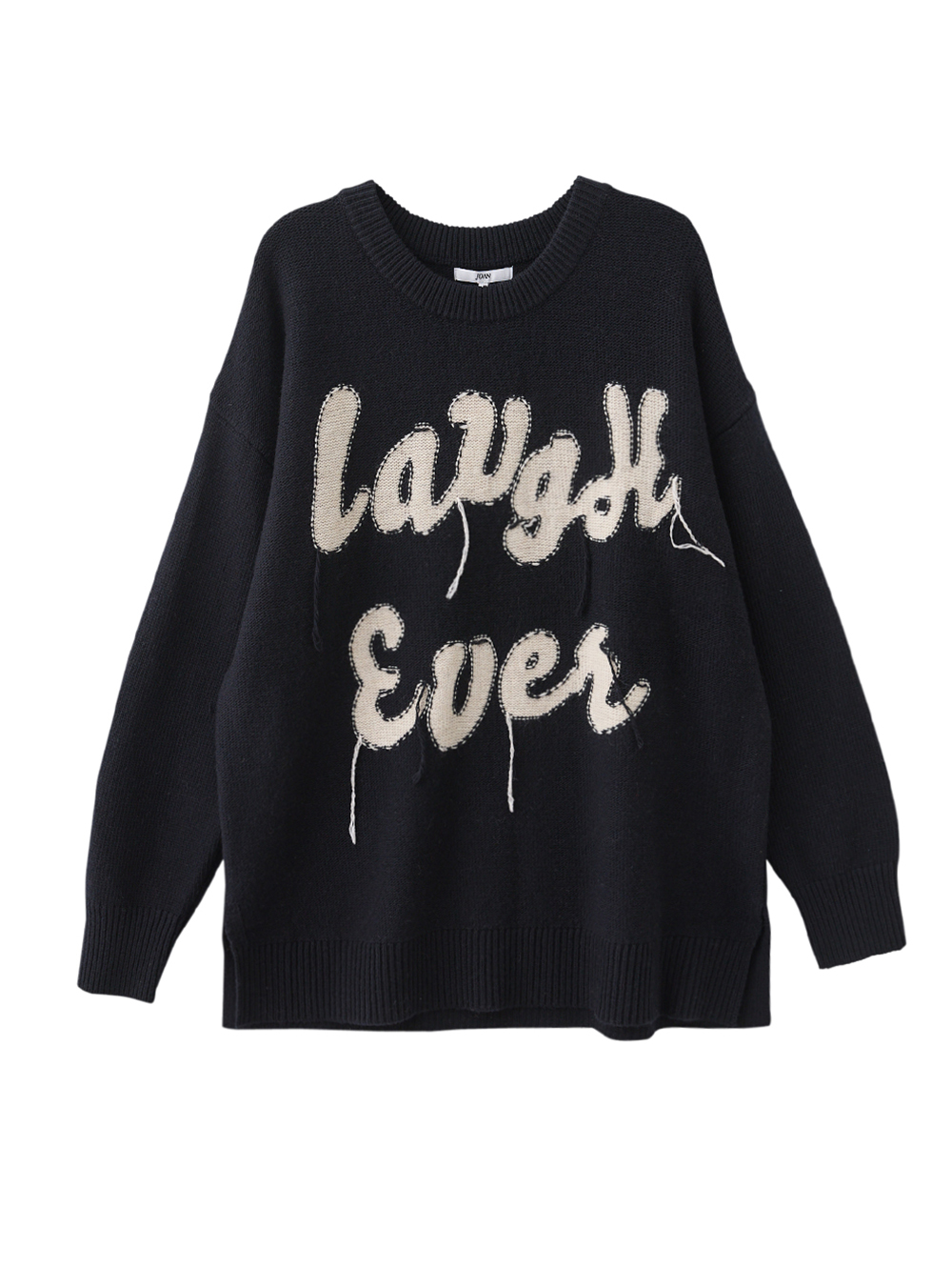 胸前手寫風格字樣繡線搭配自然垂若線尾, 營造慵懶不刻意的隨性風格, 輕鬆落肩版型, 長度修飾腹臀, 可單穿, 與大衣搭配也好看。