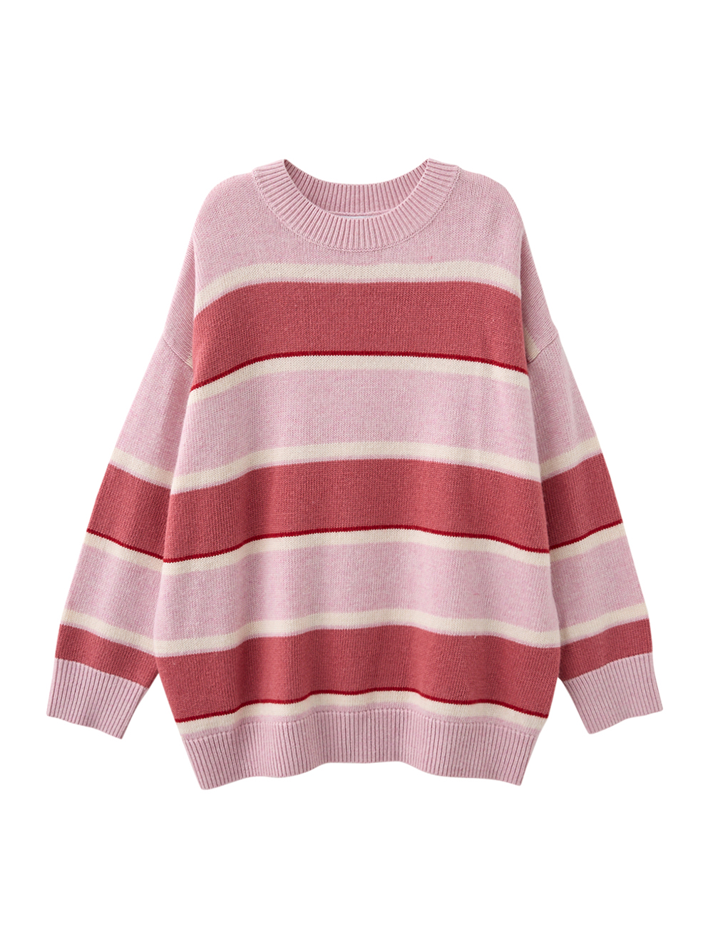 採用35%的羊毛混紡, 保暖不厚重, 柔軟舒適兼具。寬條紋設計展現活潑視覺, 落肩微寬鬆剪裁輕鬆修飾上身比例。