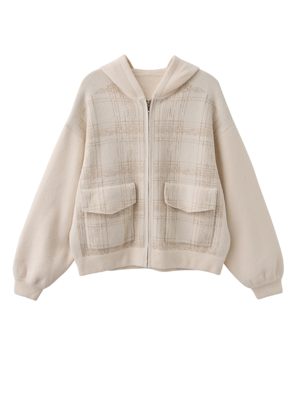 仿羽毛紗材質帶來輕盈蓬鬆首感, 表層毛絨提升溫暖度與親膚觸感, 落肩版型活動自在舒適。