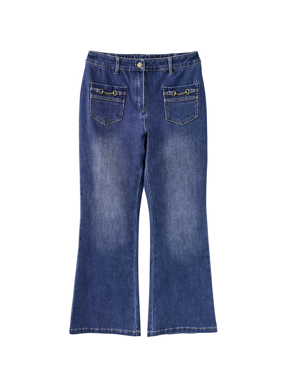 JOAN金屬鍊裝飾微喇叭牛仔褲