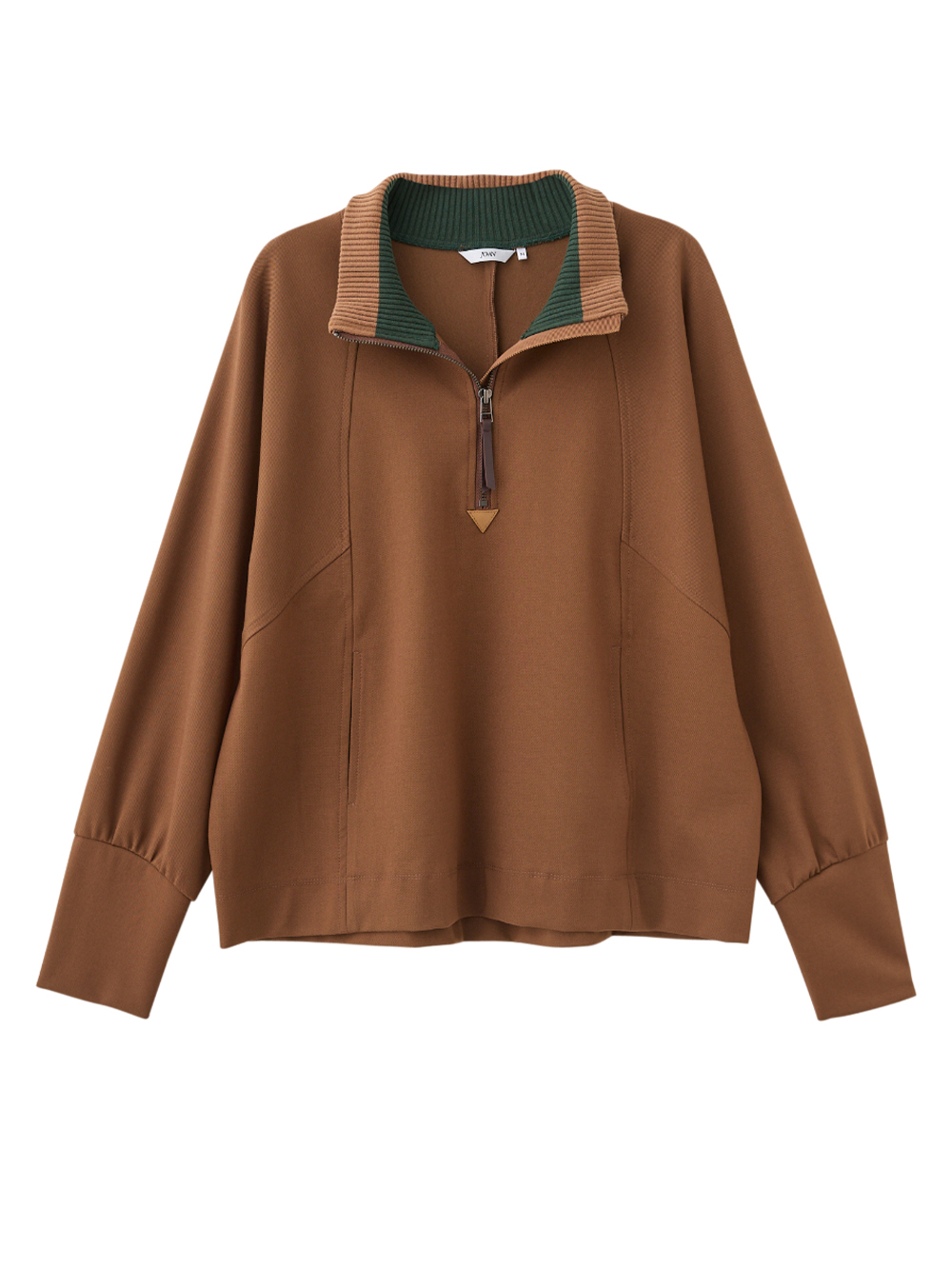 半開襟拉鍊設計搭配撞色羅紋領, 打造休閒中的時髦細節, 面料彈性親膚, 日常運動與城市散步都好搭配。